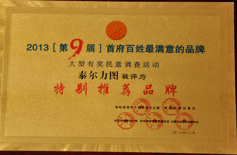 • 泰爾力圖被評(píng)為特別推薦品牌