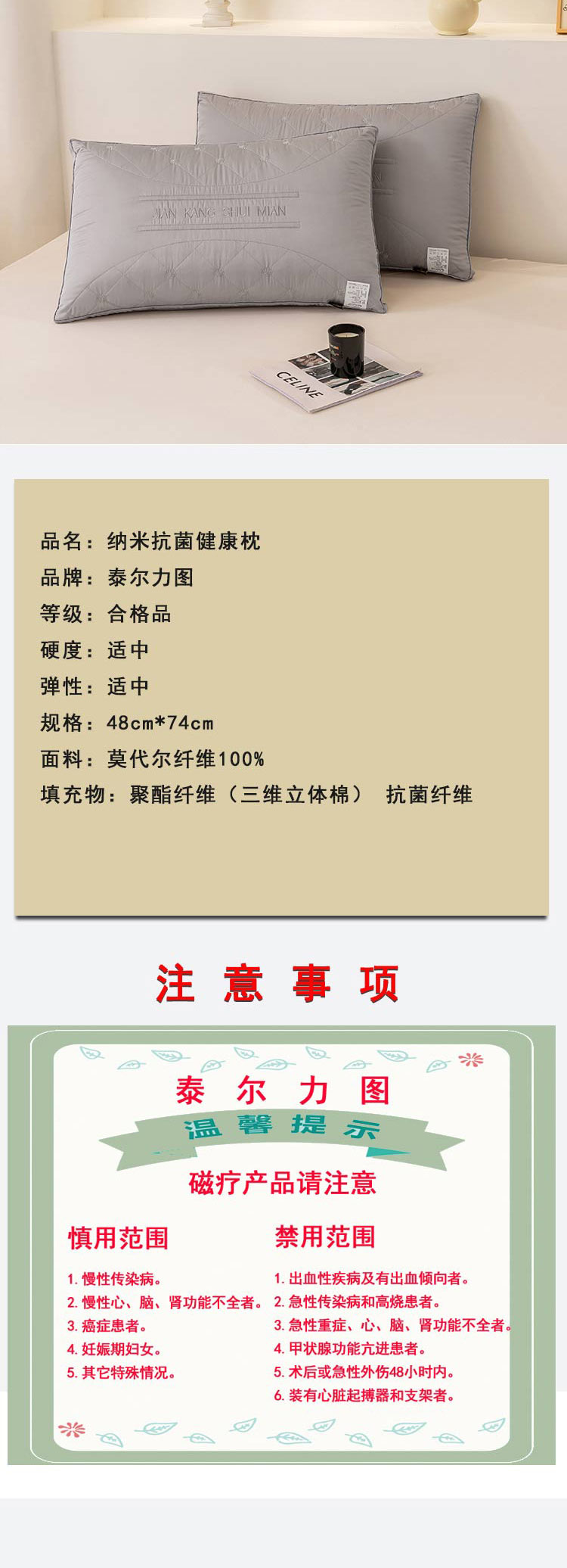 “納米抗菌健康枕”是泰爾力圖醫(yī)療保健用品有限公司與中國(guó)科學(xué)院聯(lián)合研發(fā)的新一代高科技健康保健產(chǎn)品,該產(chǎn)品采用了高科技納米銀材料,可有效抗菌抑菌,預(yù)防螨蟲(chóng)滋生。